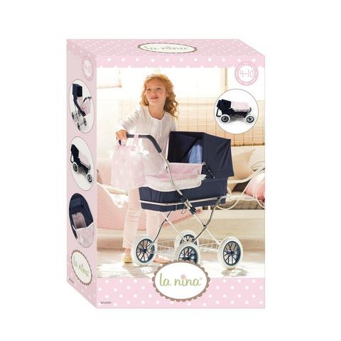 Классическая коляска-люлька испанского бренда для кукол из серии "Шарлота" подходит для кукол размером до 52 см.