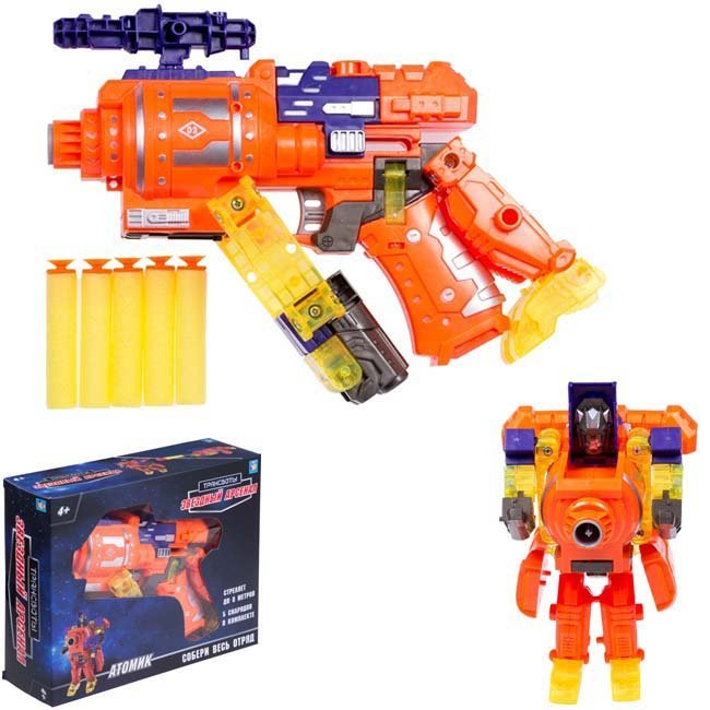Игрушка выполнена в виде бластера, трансформирующегося в робота Атомик.
